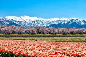 朝日町の春の四重奏 — 舟川べりの桜・チューリップ・菜の花・朝日岳が織りなす絶景